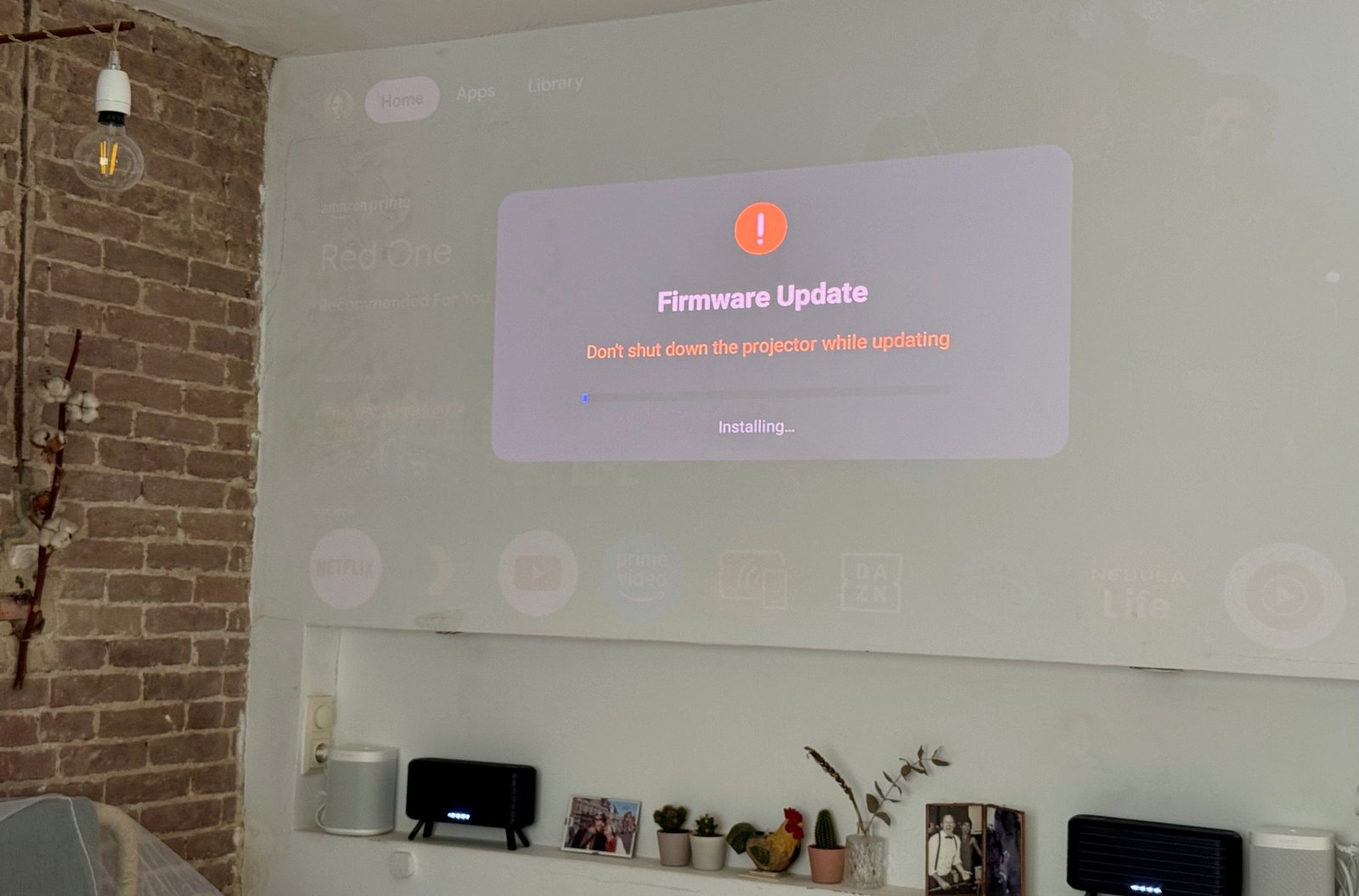 The X1’s lumen count made casual viewings possible in spaces flooded with ambient light. At times, I found the image to be too bright, especially when all that light was focused into a 32-inch diagonal on a glossy Ikea panel from just five feet (about 1.5 meters) away. Fortunately, you can manually reduce the power and iris settings to dim the image. That class-leading brightness makes the X1’s HDR10 and Dolby Vision support more than just checkmarks on a sales sheet — color is mostly accurate with plenty of contrast, but it’s still a DLP projector, so don’t expect true blacks. The X1’s lumen count should also do a decent job with 3D if you own DLP 3D glasses (I did not test this).