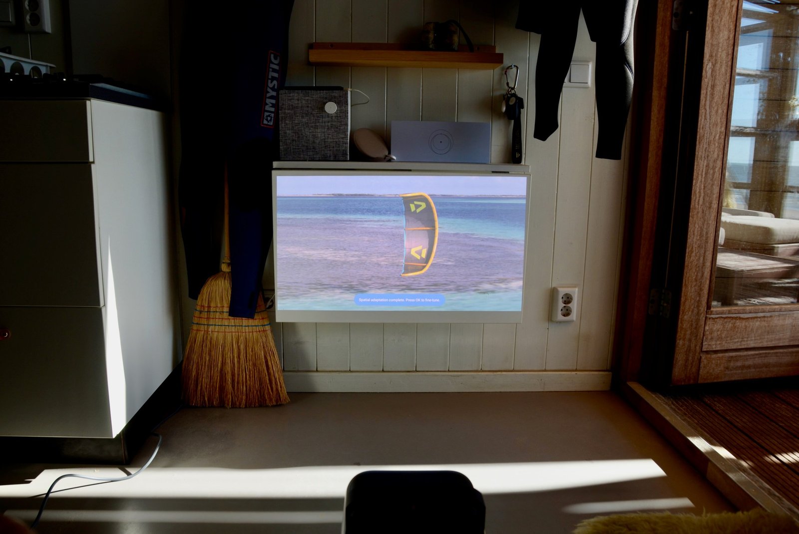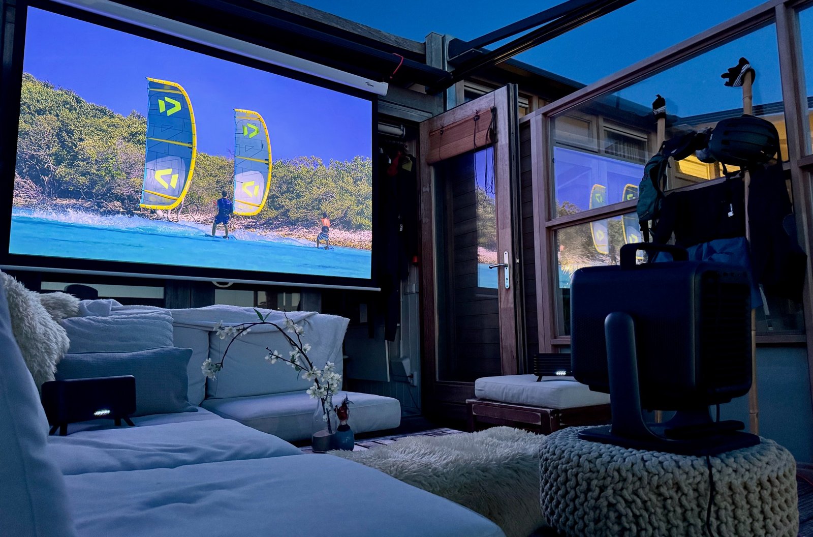 With the audio turned down the projector is largely silent thanks to its liquid cooling. The fan kicked in on an especially hot day of testing, but I could barely hear it (measuring just 26dB from a distance of 1 meter) over the regular din of a living room or waves crashing beyond.