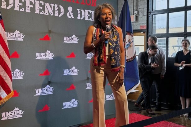 HOPEWELL, Va. -- Against an olive drab backdrop in a barbecue joint filled with the aroma of pulled pork and the sweat of a Virginia summer, Republican Winsome Earle-Sears told…