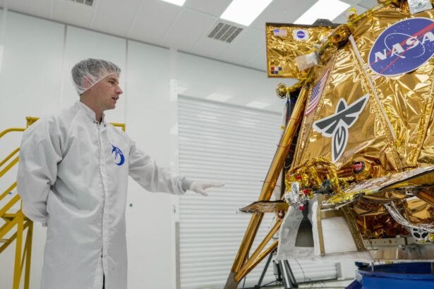 The Blue Ghost Mission Operations Engineer, Jaxon Liebeck, showcases the Blue Ghost moon lander at Firefly Aerospace headquarters on Tuesday, Dec. 3, 2024 in Cedar Park. Houston Chronicle/hearst Newspapers |…