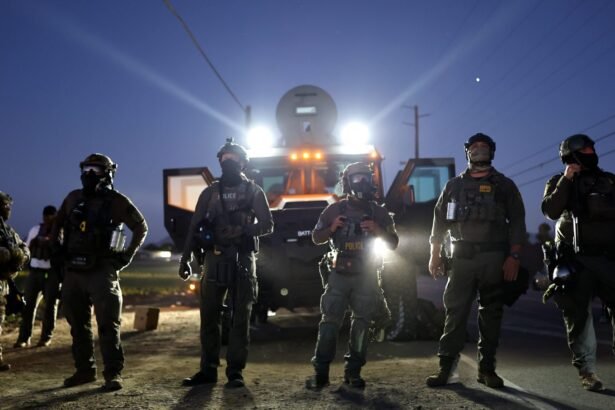 Ad Policy Federal agents block people protesting an ICE immigration raid at a nearby licensed cannabis farm on July 10, 2025 near Camarillo, California. (Mario Tama / Getty Images) A…