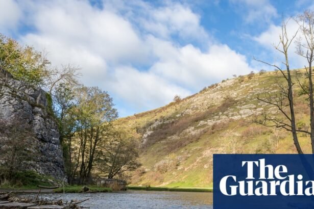 The river rushes white around each of the large, flattish rocks as I tread tentatively over the stepping stones that Dovedale is famous for. This limestone valley on the border…