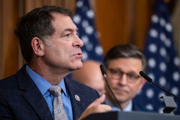 House Homeland Security Committee Chair Mark Green (R-Tenn.) speaks alongside House Speaker Mike Johnson (R-La.) after the House passed budget reconciliation legislation at the U.S. Capitol on May 22, 2025.Francis…