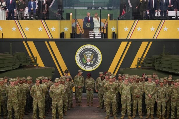 U.S. President Donald Trump and First Lady Melania Trump stand together at the end of the U.S Army parade on June 14, 2025 in Washington, DC. Andrew Harnik | Getty…