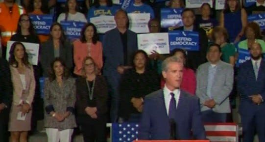 Gov. Gavin Newsom spoke to the nation from Los Angeles, CA where he laid out his plan to fight back against Trump’s effort to rig the 2026 election by asking the people of California to redistrict to neutralize Trump’s Texas congressional district gerrymander.