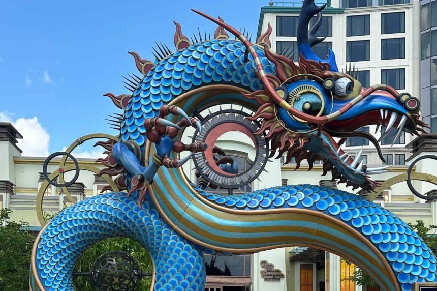 There’s one lone dragon making a huge roar at Universal Orlando Resort’s new theme park Epic Universe, the first American theme park to open in 24 years on May 22. While there’s an entire world dedicated to the mythical creature at How to Train Your Dragon – Isle of Berk, across the in Celestial Park section is a mega-sized statue of another dragon, greeting visitors into the pan-Asian restaurant The Blue Dragon.