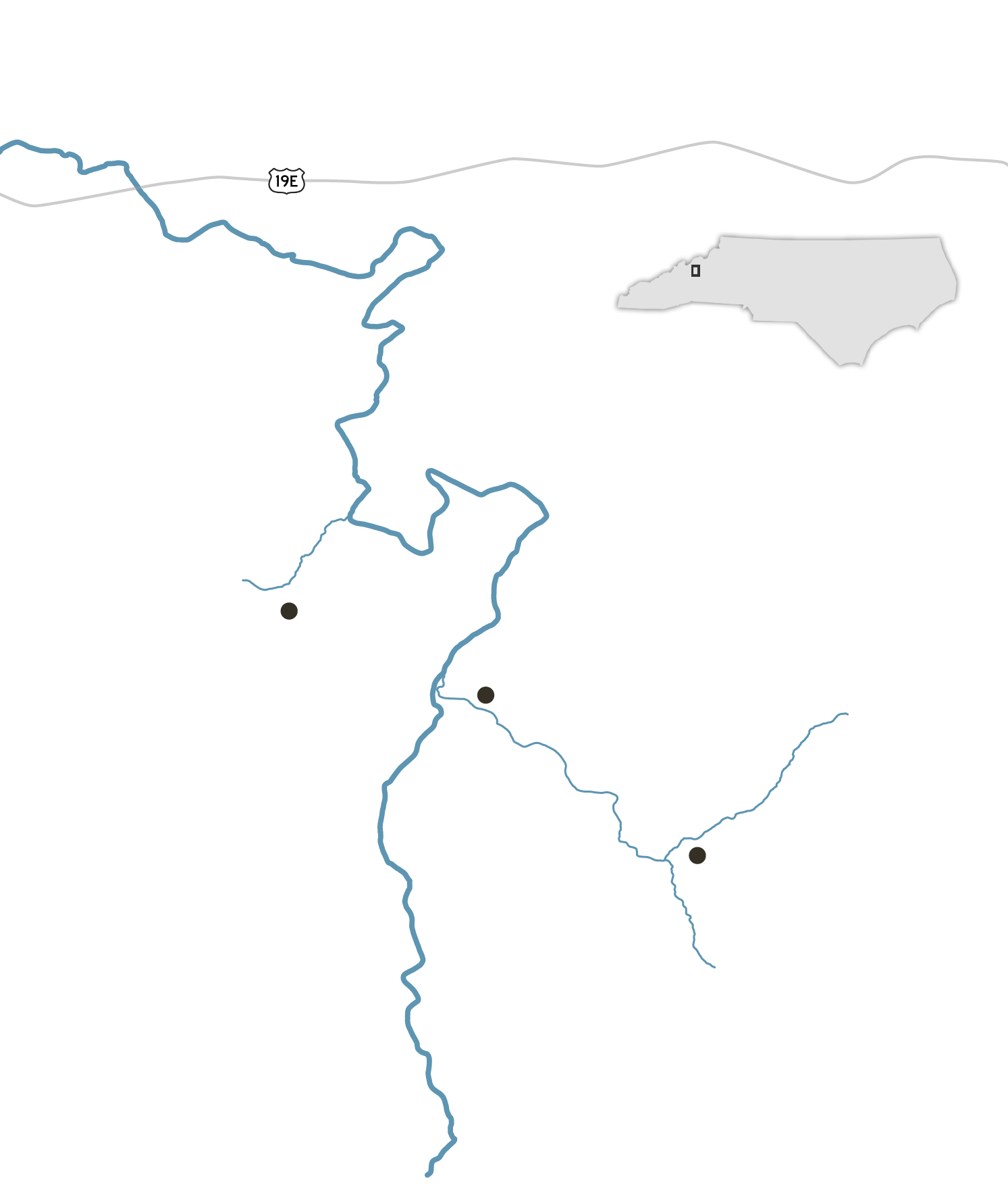 The Cane River is about to get pummeled by both. Hemmed in by mountains, it forms the spine of one major valley in Yancey County. One of its tributaries, Cattail Creek, extends off that spine like an arm reaching east. Another, Tudy Creek, reaches west.
