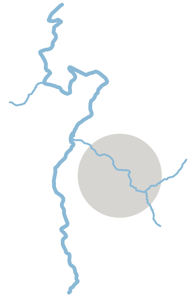 Several peaks wrap around Tudy Creek. High atop a particularly craggy one, the rainfall gets a toehold beneath soil clinging to a very steep and slightly concave slope of rock. Soil and rock will begin to slide with the water. Following the creekbed, the flow will gain velocity and weight and hurtle downhill with enough power to uproot trees and dislodge boulders.