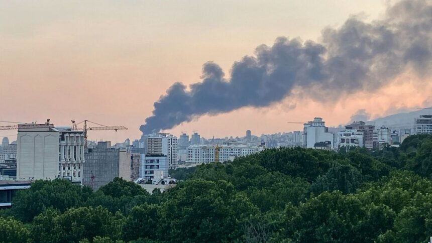 Smoke was seen rising from at least three sites in the Iranian capital.