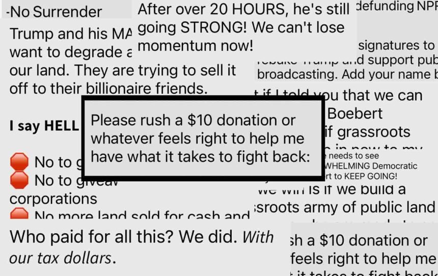 These ubiquitous e-mail and text-message pleas for donations are known as “churn and burn” come-ons.