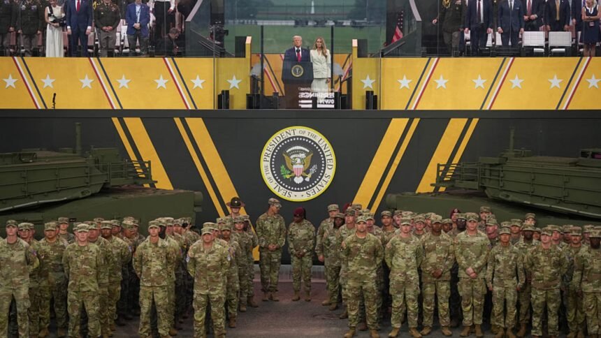 WASHINGTON — Thousands of troops descended on Washington, D.C., on Saturday, with tanks filling the streets and helicopters overhead, as President Donald Trump staged a military spectacle for the U.S. Army’s 250th anniversary.