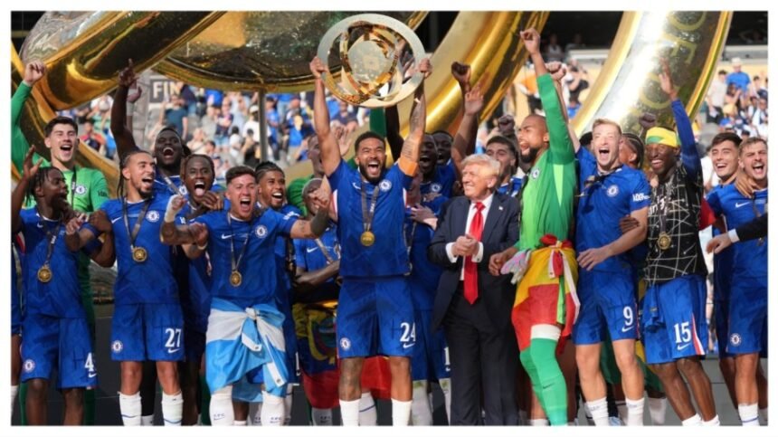 President Trump joined the English soccer club Chelsea on Sunday on the field to celebrate its victory in the 2025 FIFA Club World Cup at New Jersey’s MetLife Stadium.