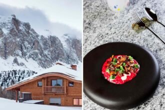 In search of a place to be rather than do, my son and I book a simple cabin, De Ooievaar (“the Stork”), with a plan to walk, cycle, read and sleep. Upcycled from an old barn during the pandemic by owner Jurjen Veldboom, the cabin’s galley kitchen and wooden sleeping platforms give it the cosy feel of a boat but it’s the picture window in its living room that sells it to us. With a sofa to one side and a wood burner on the other, it’s the perfect winter roost: a place to sit and sketch, or watch deer bouncing through the alders.